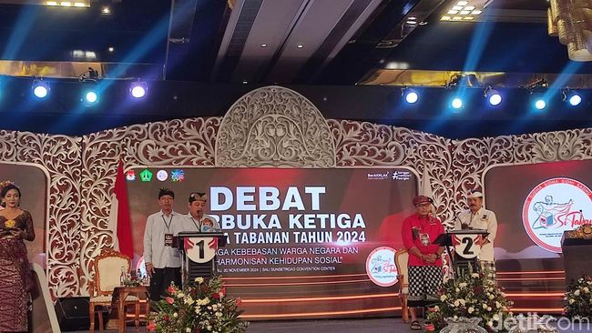 Debat yang mengangkat tema "Menjaga Kebebasan Warga Negara dan Keharmonisan Kehidupan Sosial" ini mempertemukan pasangan calon (paslon) nomor urut 1, I Nyoman Mulyadi-I Nyoman Ardika, yang diusung KIM Plus, dengan paslon nomor urut 2, I Komang Gede Sanjaya-I Made Dirga, yang diusung PDIP.