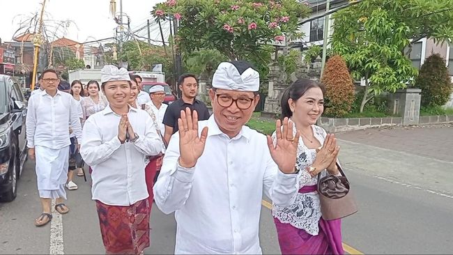 "Saya berangkat sama anak dan istri. Saya juga sempat sungkem sama ibu memohon doa restu dan sungkem. Saya juga sempat melakukan persembahyangan," terang Adi Arnawa.