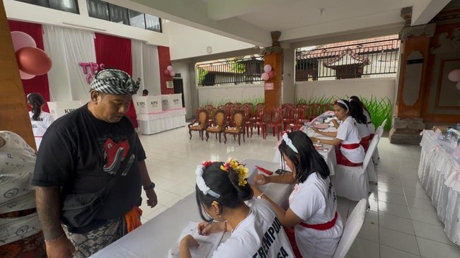 Tempat Pemungutan Suara (TPS) 08 di Banjar Kerta Sari, Kelurahan Panjer, Denpasar, Bali, mempunyai konsep berbeda dari biasanya. Umumnya, petugas di TPS adalah laki-laki dan berusia matang. Namun, di TPS 08 Panjer semuanya perempuan dan anak-anak muda yang masuk golongan Generasi Z (Gen Z).
