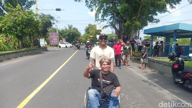 Seorang warga difabel, Komang Buda Ardita (48), menepati janjinya menggunakan kursi roda sejauh lebih dari 20 kilometer dari rumahnya di Desa Nusasari, Kecamatan Melaya, menuju kantor Sekretariat DPC PDIP Jembrana.