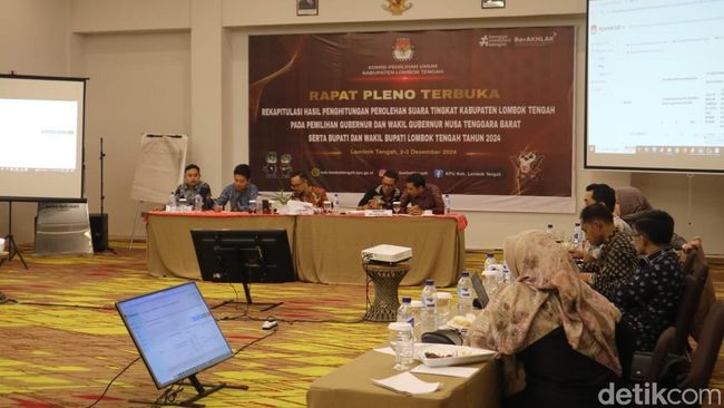 KPU Lombok Tengah saat menggelar rapat pleno rekapitulasi suara Pilkada 2024. Foto: (Edi Suryansyah/detikBali)
