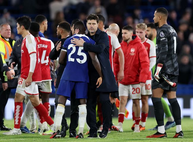 Laga Chelsea vs Arsenal berlangsung di bawah guyuran hujan. Tuan rumah memimpin 1-0 di menit ke-15 lewat penalti Cole Palmer. Tembakan lob Mykhailo Mudryk di menit ke-48 menambah keunggulan The Blues.