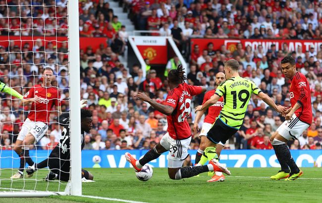 Kebuntuan akhirnya pecah pada menit ke-20 dan Arsenal memimpin 1-0. Diawali sapuan bola dari Andre Onana yang dipotong di garis tengah, Kai Havertz yang lolos dari perangkap offside karena Casemiro telat naik, sukses menusuk hingga kotak penalti dari sisi kanan.