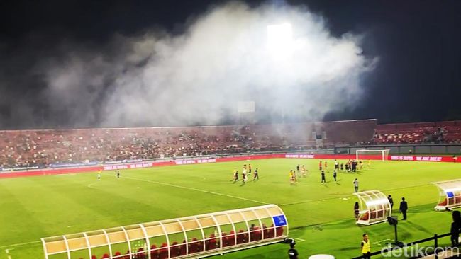 Bahkan satu menit dari enam menit injury time yang diberikan, wasit menghentikan pertandingan lantaran muncul asap flare dan kembang api dari bangku penonton sisi utara lapangan. Ini membuat situasi sempat tidak kondusif untuk melanjutkan laga.