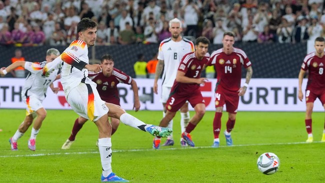 Jerman menang telak 5-0 atas Hungaria dalam laga UEFA Nations League. Jerman tampil cemerlang dalam laga yang berlangsung di Esprit Arena, Minggu (8/9/2024) malam WIB.