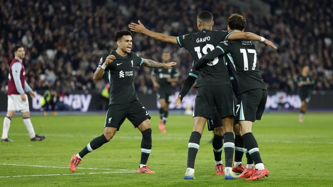 Liverpool tampil gemilang dengan kemenangan telak 5-0 atas West Ham United dalam lanjutan Premier League di London Stadium. Hasil ini membuat The Reds semakin kokoh di puncak klasemen Liga Inggris.