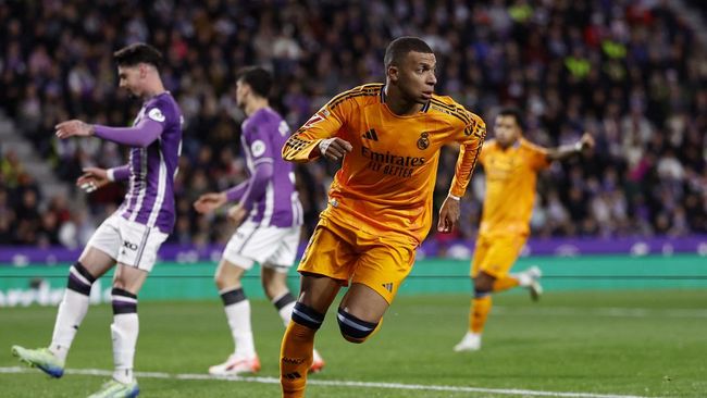 Real Madrid sukses mencukur Real Valladolid dengan skor 3-0 dalam duel pekan ke-21 Liga Spanyol di Stadion José Zorrilla, Minggu (26/1/2025) dini hari WIB. Kylian Mbappe memborong seluruh gol untuk Madrid dengan hat-trick yang ia ciptakan.