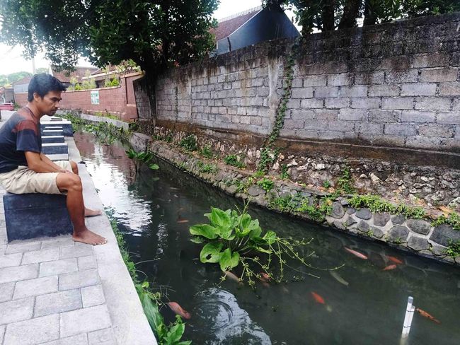 Dalam kesempatan tersebut, detikBali, berkesempatan bertemu dengan salah satu masyarakat Banjar Gunung, Komang Sudantra (40). Ia tampak duduk seorang diri di pinggir sungai sembari melihat ke arah ikan-ikan nila.