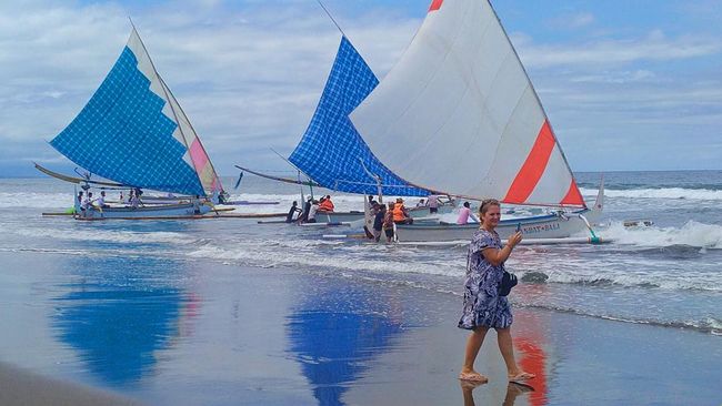 Dari pantauan detikBali di lokasi, sebanyak 16 jukung beradu cepat. Nelayan mempersiapkan jukung yang digunakan untuk perlombaan, mulai dari mengecek kondisi jukung, memasang layar, dan katir jukung.