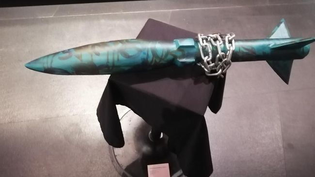 Hotel Artotel yang terletak di Sanur, Denpasar, menggelar agenda Art Space. Salah satu karya yang menonjol dalam pameran tersebut adalah kriya berbentuk rudal.