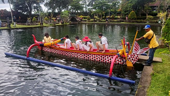 Lanjut AA Kosalya, perahu menjadi salah satu fasilitas di Taman Tirta Gangga yang kini menjadi favorit wisatawan. Untuk dapat naik ke perahu tersebut, para wisatawan cukup membayar Rp 20 ribu per orang satu kali putaran.