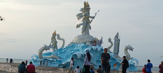 Rupanya kehadiran tiga patung ini menyedot perhatian para pengunjung yang datang khusus menutup akhir tahun di Pantai Jerman. Pasangan muda Awan (28) dan Anggun (20) dari Pemogan, Denpasar mengaku sengaja ke Pantai Jerman untuk melihat tiga patung tersebut.