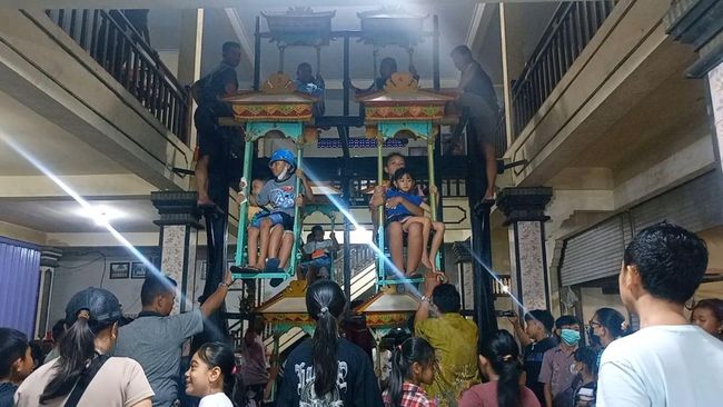 "Kami biasanya membunyikan kulkul (kentongan) di balai banjar. Tanda bahwa ayunan sudah dibuka. Karena momen liburan, sudah pasti ramai. Yang banyak berminat itu anak-anak. Mereka senang karena bisa coba mainan lawas," ungkap Suada.