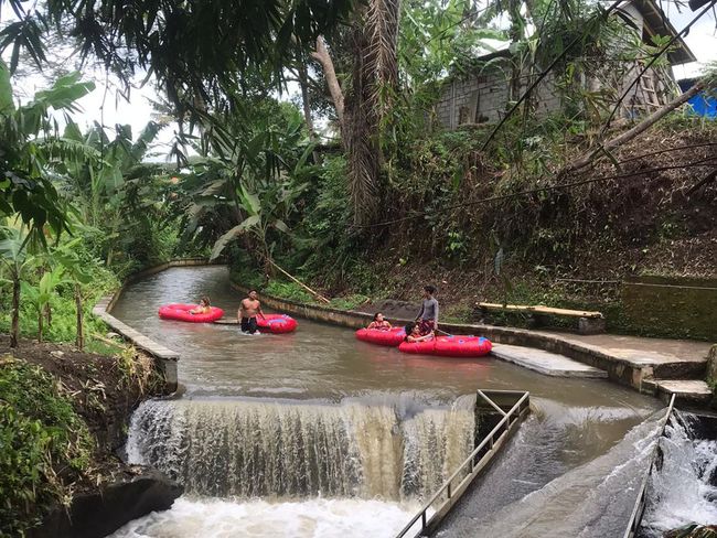 Wisatawan akan diajak menelusuri aliran Sungai Wos Teben atau Gunung Rata yang bersumber dari aliran sungai Gunung Lebah di Ubud. Aliran sungai yang berlekuk-lekuk akan memberi sensasi tersendiri, terutama bagi traveler yang menyukai permainan air.