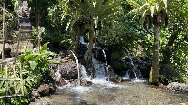 Bali - Berbicara spot wisata di Bali seakan tak ada habisnya. Di kabupaten Karangasem, terdapat wisata pemandian dengan airnya yang bening serta pemandangan alam yang indah. Namanya pemandian Tukad Arca.