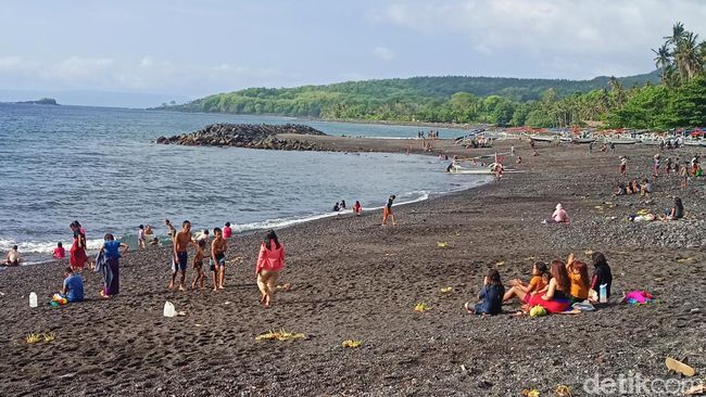 Pantai Jasri di Kelurahan Subagan, Karangasem, Bali, masih menjadi favorit masyarakat untuk merayakan Banyu Pinaruh, Minggu (17/12/2023). Ratusan warga silih berganti ke pantai itu untuk melaksanakan Banyu Pinaruh sejak pagi tadi.