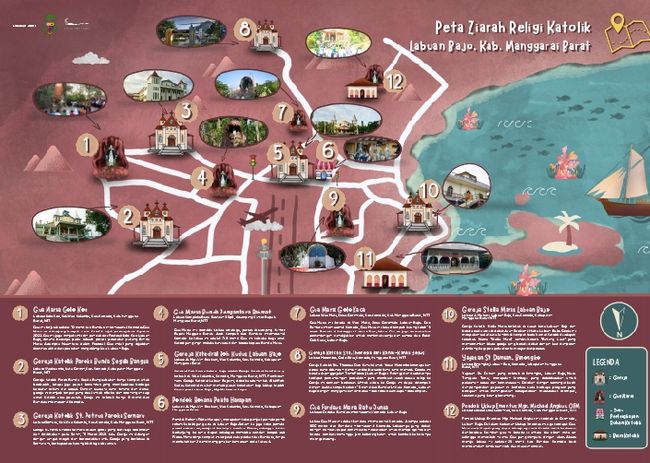 Terdapat 12 titik lokasi yang dapat dikunjungi para peziarah dan wisatawan dalam peta perjalanan tersebut. Mulai dari gereja-gereja, gua Maria, hingga toko pernak-pernik kerohanian yang ada di dalam Kota Labuan Bajo.