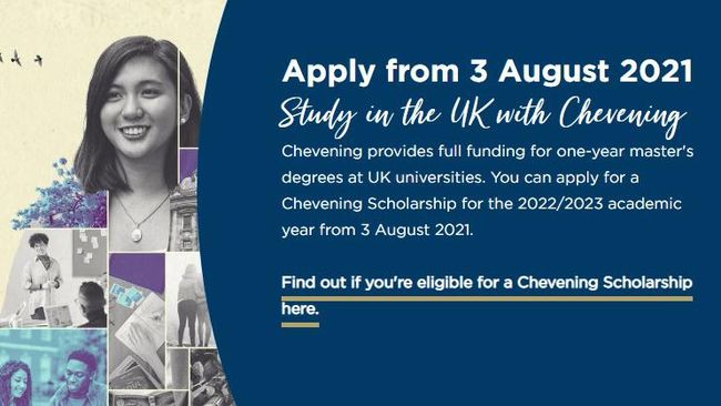 Pendaftaran beasiswa Chevening untuk melanjutkan studi S2 di kampus-kampus Inggris sudah dibuka. Pendaftaran ini akan dibuka hingga 2 November 2021 mendatang.