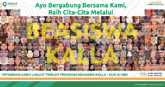 Program Beasiswa Kalla kembali dibuka pada tahun 2022-2023 untuk para mahasiswa. Pendaftaran Beasiswa Kalla 2022 dibuka mulai 28 Juni-19 September 2022.
