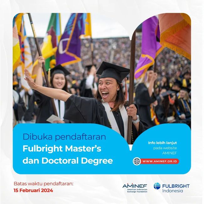 Pendaftaran beasiswa Fulbright 2024 untuk studi S2 dan S3 masih dibuka. Pendaftaran akan ditutup pada 15 Februari 2024.