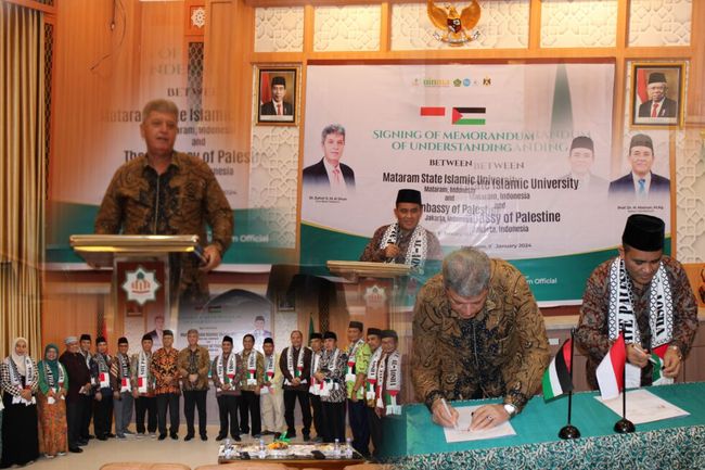 Universitas Islam Negeri (UIN) Mataram menandatangani Memorandum of Understanding (MoU) kerja sama dengan Kedutaan Besar Palestina. MoU tersebut berisikan dukungan UIN Mataram terhadap Palestina lewat penyediaan beasiswa bagi warganya.