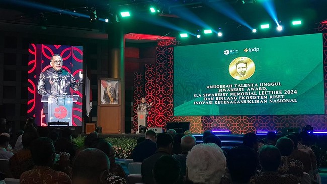 "Jadi dengan demikian, kami berharap bisa mengejar ketertinggalan kita di teknologi nuklir secara umum dalam waktu sesingkat-singkatnya," ucapnya dalam penganugerahan tokoh nuklir Siwabessy Award dan GA Siwabessy Memorial Lecture oleh BRIN di Gedung BJ Habibie BRIN, Jakarta, Kamis (5/12/2024).