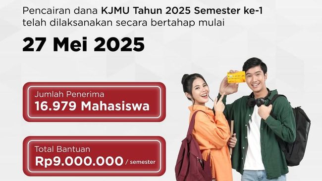Pemerintah Provinsi DKI Jakarta mengumumkan bantuan dana Kartu Jakarta Mahasiswa Unggul (KJMU) Semester 1 Tahun 2025 sudah dicairkan. Pencairan dana bantuan periode Januari-Juni ini dilakukan secara bertahap sejak Selasa, 27 Mei 2025 lalu.