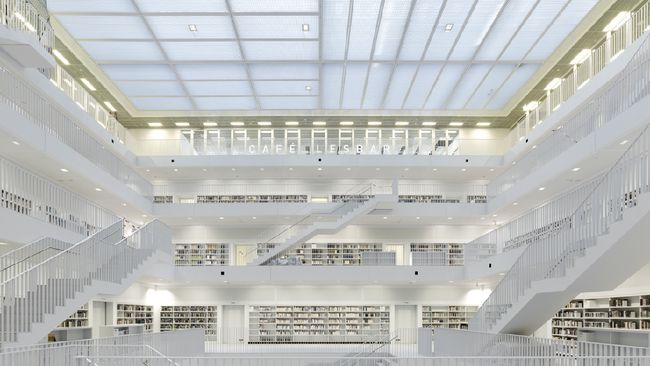 Perpustakaan Stuttgart adalah perpustakaan yang memiliki desain bangunan yang unik serta memiliki kesan minimalis. Kesan minimalis tersebut karena warna perpustakaan yang dominan putih. Perpustakaan ini memiliki 11 lantai dengan 9 lantai atas dan 2 lantai bawah tanah.