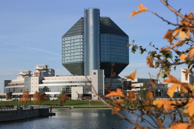 Bangunan yang tampak menjulang megah di antara sekitarnya adalah perpustakaan nasional dari Belarus. Perpustakaan campur tangan dari arsitektur Victor Kramarenko dan Michael Vinogradov ini memiliki 23 lantai di dalamnya.