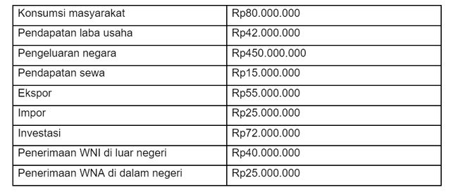Diketahui pendapatan suatu negara seperti di bawah ini, berapakah GNP negara tersebut?