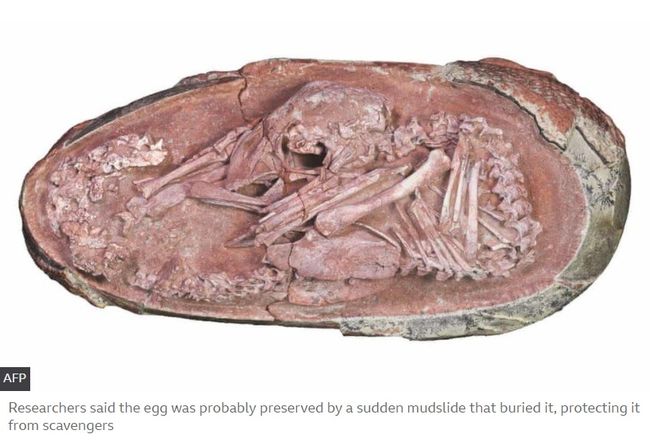 Fosil telur dinosaurus yang siap menetas ditemukan di Ganzhou, China Selatan. Fakta menariknya, para peneliti menemukan fosil tersebut dalam keadaan utuh. Padahal, ilmuwan memperkirakan fosil embrio tersebut berusia setidaknya 66 juta tahun.