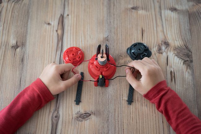 3. Hubungkan kedua ujung kabel dengan kutub positif dan negatif baterai.