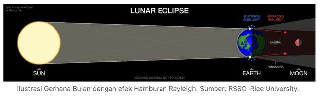 3. Kemudian sinar matahari yang sampai ke bulan akan dibiaskan ke panjang gelombang yang lebih panjang dalam spektrum cahaya tampak yaitu spektrum merah.