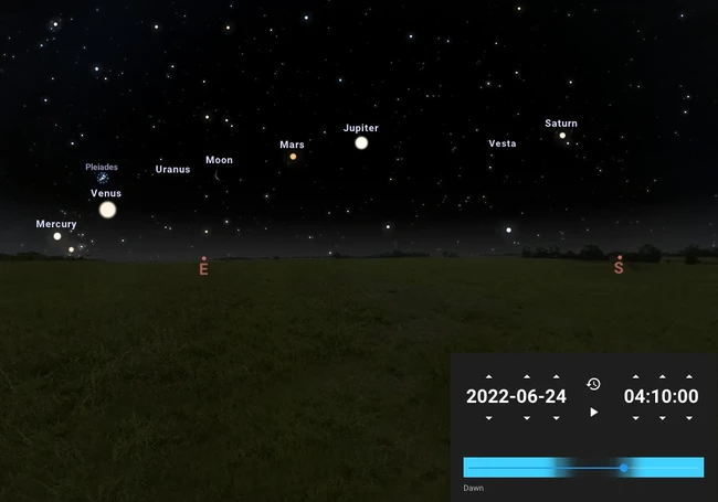 Bagi detikers yang sempat terlewat menyaksikan fenomena planet sejajar pada 24 Juni 2022 kemarin, tidak perlu khawatir. Faktanya, fenomena unik ini masih bisa disaksikan pada hari-hari setelahnya.