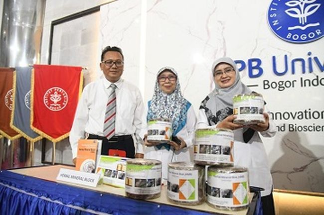 Rektor IPB University, Prof Arif Satria ketika meluncurkan produk Herbal Mineral Blok, di Kampus IPB Dramaga, Bogor, Jawa Barat mengatakan, inovasi tersebut sangat penting mengingat wabah penyakit mulut dan kuku (PMK) yang menyebar di berbagai daerah di Indonesia. Ia mengklaim, inovasi ini dapat membantu meningkatkan imunitas ternak terutama ruminansia.