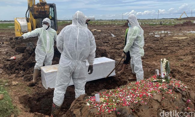 Setelahnya, jenazah langsung dikafani dengan kain yang menutup seluruh tubuh. Kemudian, jenazah yang tidak wajib dimandikan seperti jenazah muslim lainnya tersebut dimasukkan dalam kantong yang tidak tembus air untuk mencegah penyebaran virus dan menjaga keselamatan petugas.