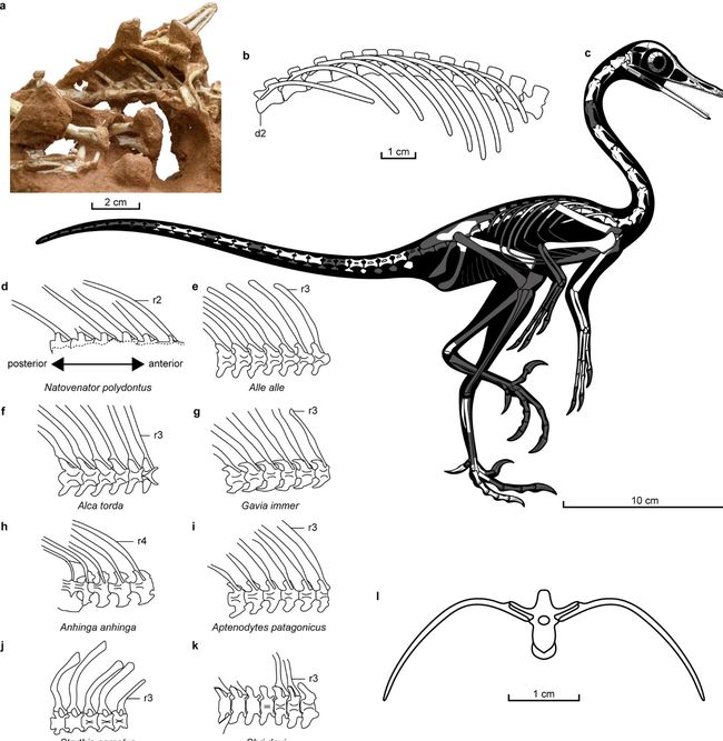 "Sudut antara setiap tulang rusuk dan vertebra artikulasi yang terkait sangat rendah, seperti banyak burung penyelam, tetapi berbeda dengan theropoda terestrial," jelas Lee.
