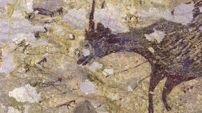 Di Indonesia, sekitar 12.000 tahun sebelumnya, orang-orang di pulau Sulawesi melukis pemandangan panorama yang membentang di dinding batu kapur. Pemandangan itu menggambarkan makhluk gaib yang sedang berkelahi dengan kerbau.