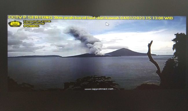 Erupsi Anak Krakatau pertama terjadi pada Selasa (3/1/2023) kemarin dengan ketinggian kolom abu mencapai 100 meter. Erupsi kedua terjadi hari ini pukul 14.10 WIB dengan ketinggian abu vulkanik sama dengan erupsi pertama, yakni 100 meter. Dan selang hampir sejam, Anak Krakatau kembali erupsi, pukul 15.09 WIB.