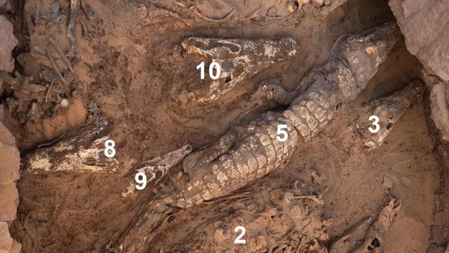 10 Mumi buaya dari 2.500 tahun lalu ditemukan di makam Qubbat al-Hawa, Aswan, dekat Sungai Nil, Mesir. Sekilas, mumi-mumi ini tampak seperti buaya yang sedang berenang di lumpur.