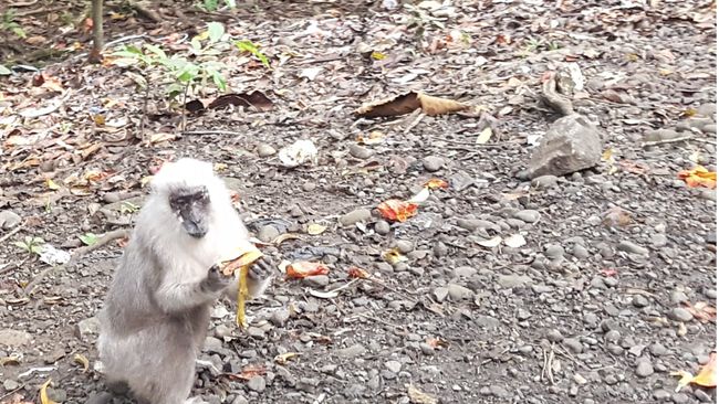 Aktivitas memberi makan monyet liar yang seringkali dilakukan atas dasar rasa kasihan kepada monyet, tanpa disadari sebenarnya malah menjerumuskan kawanan monyet langka ini. Aktivitas ini hanya akan menciptakan monyet-monyet pengangguran bermental pengemis, yang kerjanya hanya duduk nongkrong di pinggir jalan, menanti belas kasihan para pengendara membagi makanan.