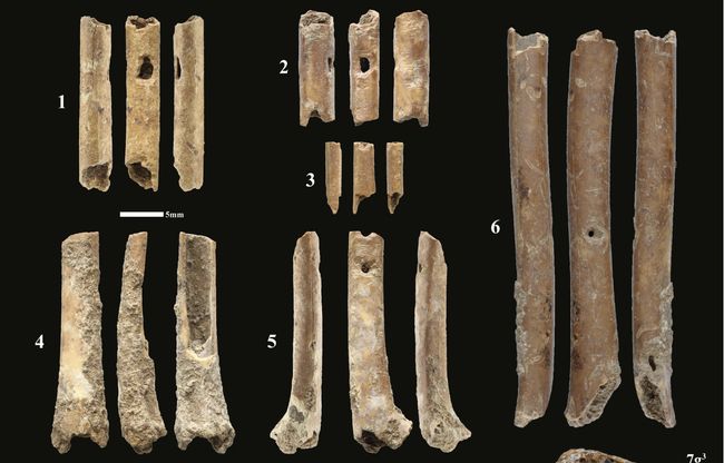 Mereka menemukan satu lengkap dan enam fragmen tulang yang dikerjakan sebagai instrumen suara dari jenis yang belum pernah diidentifikasi sebelumnya dalam catatan Paleolitik.