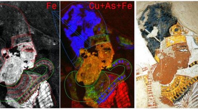 Namun, keberadaan terungkap lewat gambar kimia. Di atasnya, sang pelukis kemudian menambahkan warna-warna lain, yang membentuk rupa perhiasan leher dan atribut Firaun.