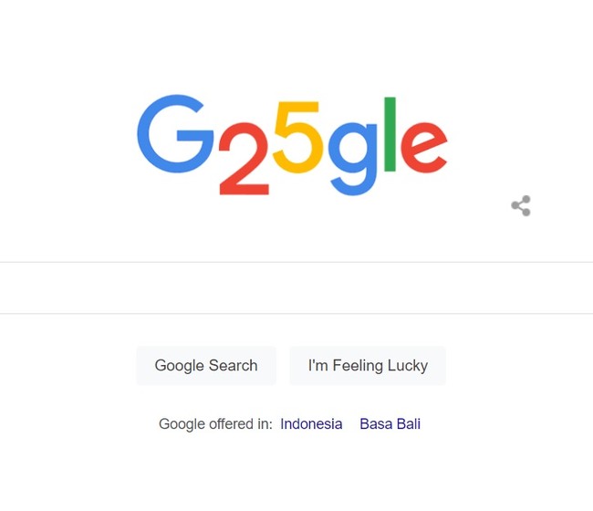 Google merayakan hari ulang tahunnya yang ke-25 tepat hari ini Rabu (27/9/2023). Tampilan laman utama Google menunjukkan Google Doodle 'G25gle' yang menyerupai angka 25.