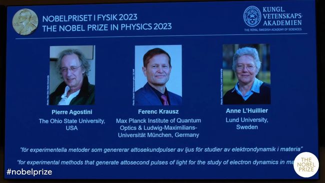 Para pemenang Nobel Fisika 2023 telah diumumkan. Tiga ilmuwan asal Amerika Serikat, Jerman, dan Swedia meraih penghargaan ini.