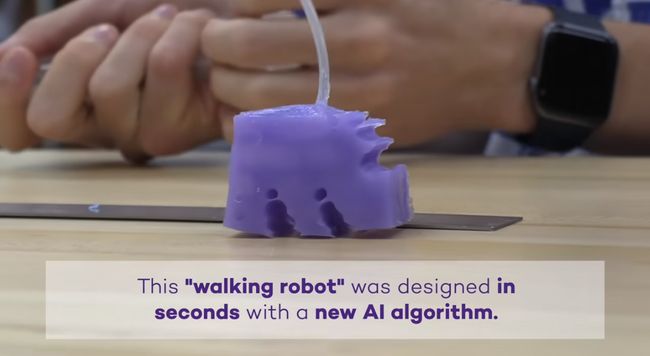 Proses pengembangan robot berjalan dari Universitas Northwestern dimulai dengan sebuah balok seukuran sabun. Pada awalnya, balok tersebut tidak dapat berjalan, tetapi AI secara cepat mengulangi desainnya.