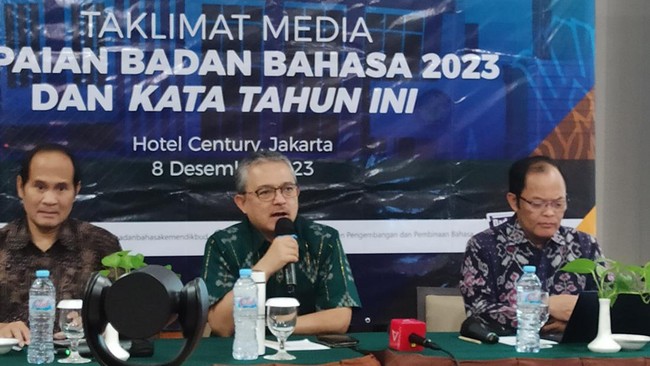 Hal tersebut disampaikannya dalam acara Taklimat Media "Capaian Badan Bahasa 2023 dan Kata Tahun Ini" yang berlangsung di Hotel Century, Jakarta, Jumat (8/12/2023).