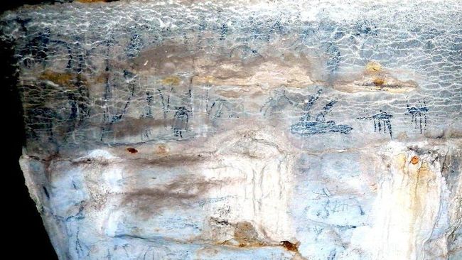 "Satu jenis figur berbentuk huruf M muncul 16 kali. Kami belum pernah menemukan figur ini di seni cadas lain di Samudra Hindia, selain temuan langka di Kalimantan, yang dipercaya dibuah sekitar 2.000 tahun lalu," sambungnya.