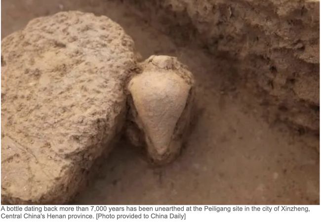 Botol berusia 7.700 tahun ditemukan di China, tepatnya di situs Peiligang di Kota Xinzheng, Provinsi Henan, China Tengah. Botol itu diduga untuk membuat ragi.