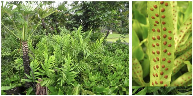 Salah satu jenis tumbuhan paku epifit yang dapat ditemukan adalah paku bersulam timbul, Microsorum scolopendria, anggota dari suku Polypodiaceae.